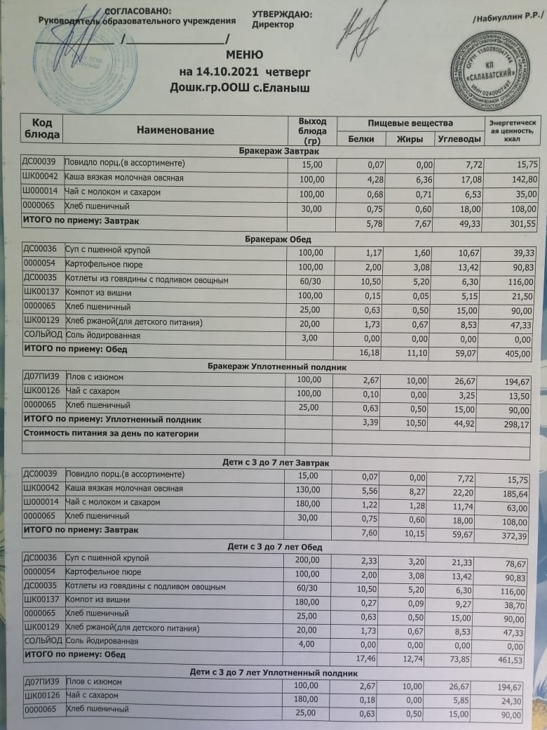 Меню 14.10.2021