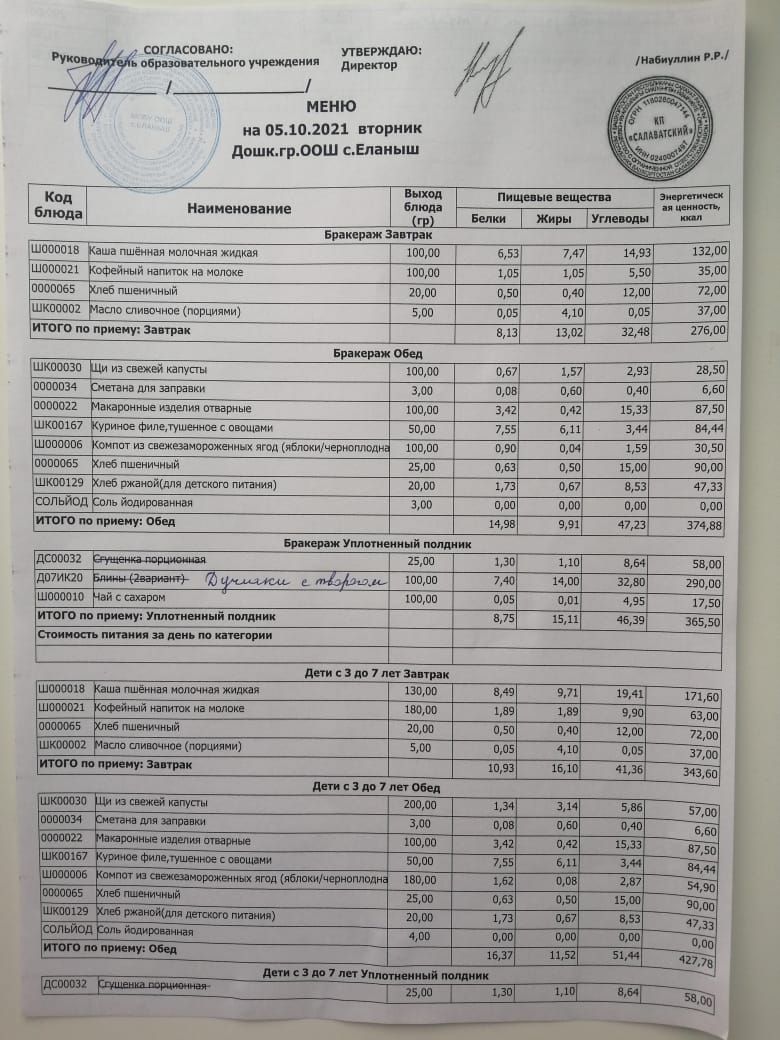 Меню 05.10.2021