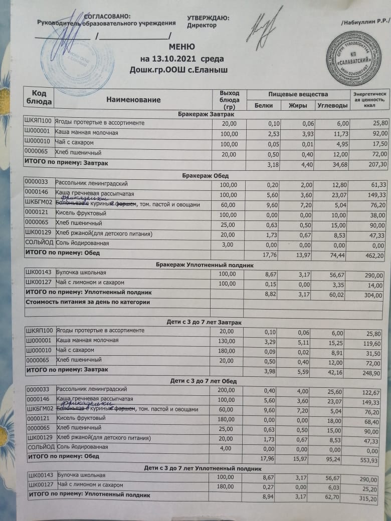 Меню 13.10.2021