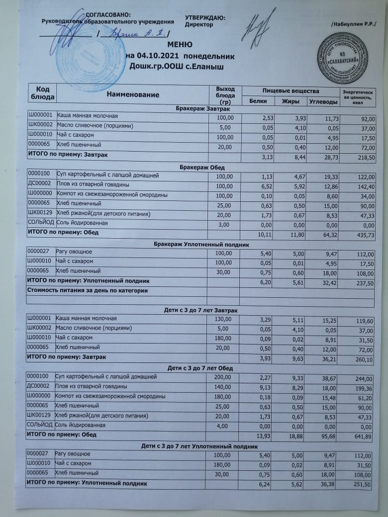 Меню 04.10.2021