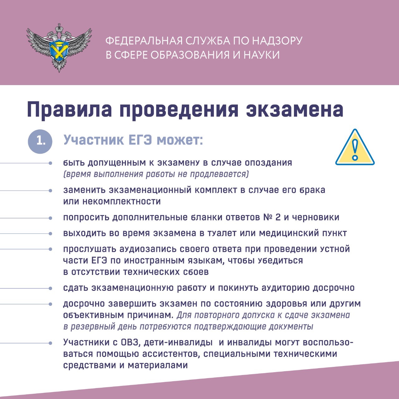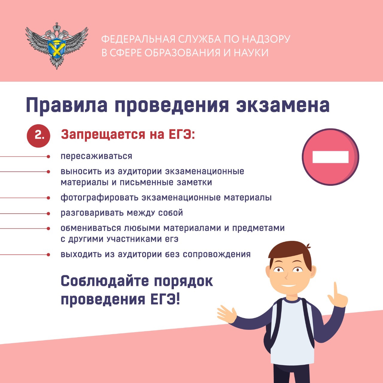 Советуем заранее ознакомиться с правилами поведение в пункте проведения экзамена (ППЭ), чтобы в важный день чувствовать себя увереннее, чётко знать свои права, а также, за что вас могут удалить с экзамена.